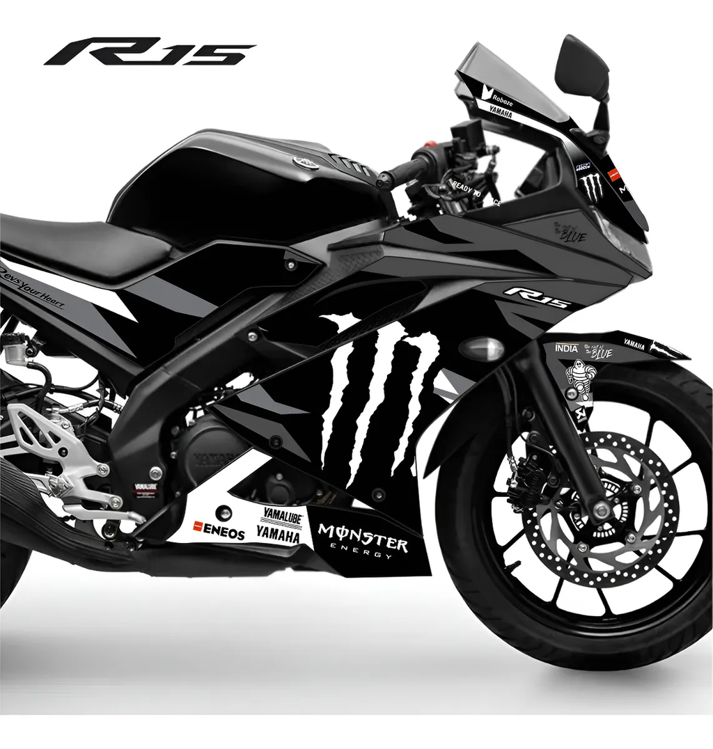 Yamaha YZF R15 Modelo Monster MotoGP para R15 PRETA Aplicável o modelo 2024, 2025 & 2026.
