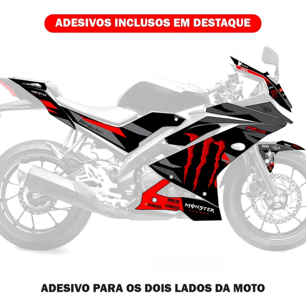Adesivo Completo Monster Vermelho - Yamaha YZF R15