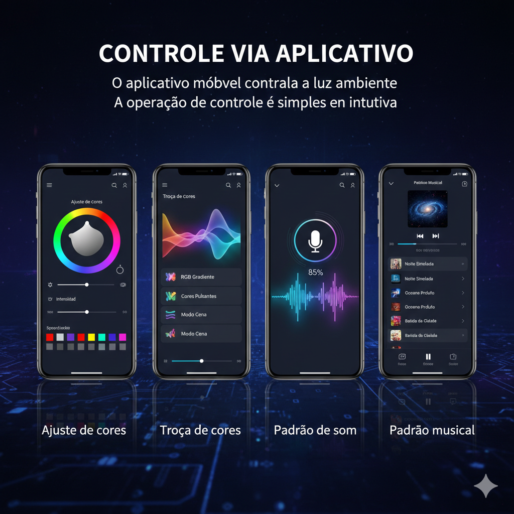 ✅ 7 cores RGB com efeitos dinâmicos (flash, strobe, pulso, respiração e mais)